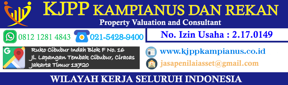 Hal ini juga berlaku kepada KJPP Kampianus dan Rekan, Plase contact us, jasa appraisal tanah dan rumah atau kantor jasa penilai property baik Untuk kepentingan Pemerintah (Umum), Pribadi, Jual beli, LELANG, TUKAR GULING, Perencanaan Pembangunan bandara, Perencanaan pembangunan pelabuhan, kjpp perencanaan pembangunan kawasan, Revaluasi asset kekayaan negara, sewa menyewa, Jual beli dengan nilai pengganti wajar dan lainnya. sama-sama kita ketahui bahwa kehadiran KJPP Independen seperti kami semangkin di butuhkan kehadirannya, baik untuk swasta atau pemerintah demikian halnya pemilik asset (rakyat) tentunya, untuk dapat memberikan rekomendasi ilmiah diantara para pihak yang berkepentingan tentunya.